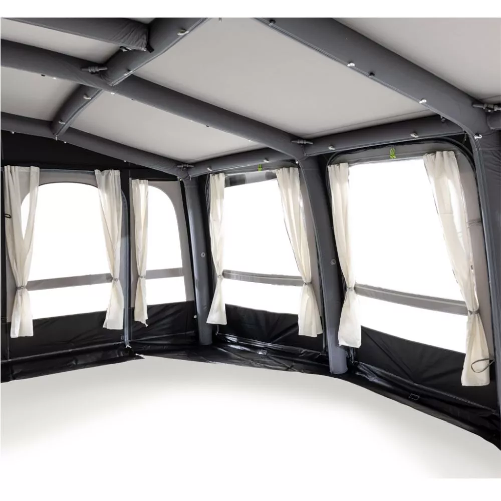Das Luftvorzelt Ace Air All-Season 400 von Dometic bietet Stil und volle FunktionalitĂ€t. An heissen Sommertagen kannst du Front- und Seitenelemente per Reissverschluss entfernen. So entsteht ein luftiges Pavillion. Grosse Panoramafenster lassen viel Tageslicht ins Zeltinnere und von drinnen hast du einen hervorragenden Blick nach draussen. Um deine PrivatsphĂ€re zu bewahren, kannst du die mitgelieferten VorhĂ€nge schliessen.Â