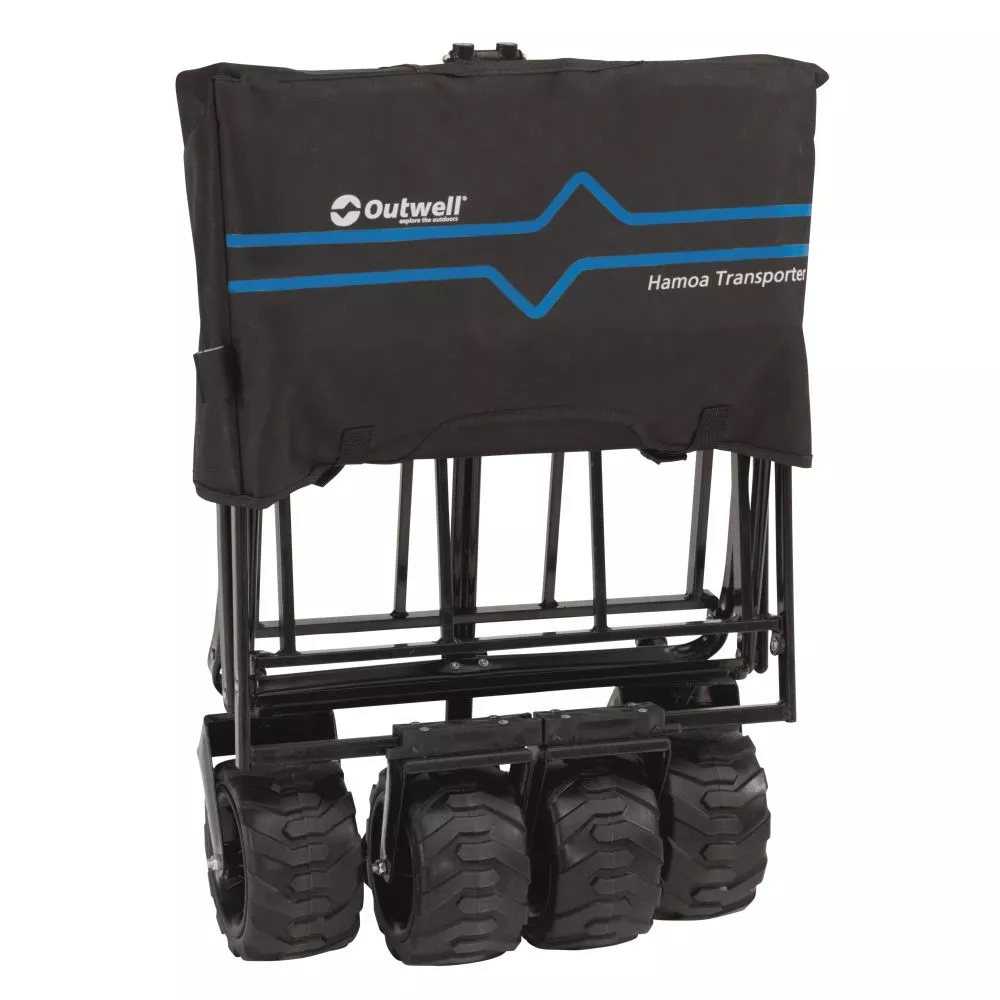 Der Outwell Hamoa Transportwagen ist sekundenschnell geöffnet und zusammengefaltet. Gefertigt aus stabilem Stahl, mit hochwertigen Radlagern und breiten, pannensicheren und geländegängigen PU-Rädern, ist der Bollerwagen für ein langes Transporterleben ausgerüstet. Im Inneren ist der faltbare Transporter mit einem widerstandsfähigen schwarzen Futter und Organizer-Tasche ausgestattet. Eine lange Deichsel sorgt für einfaches Manövrieren. Der Hamoa Camping-Transportwagen von Outwell ist eine praktische und solide Lösung, um die Ausrüstung sicher und schnell transportieren zu können –  auf dem Campingplatz, am Strand, im Park zum Picknick und bei vielen anderen Ausflügen. Wird er nicht gebraucht, kann er zusammengeklappt mit dem Verriegelungsmechanismus einfach eingerastet werden und benötigt nicht viel Platz. Eine Tragetasche für eine einfache Aufbewahrung ist im Lieferumfang enthalten.