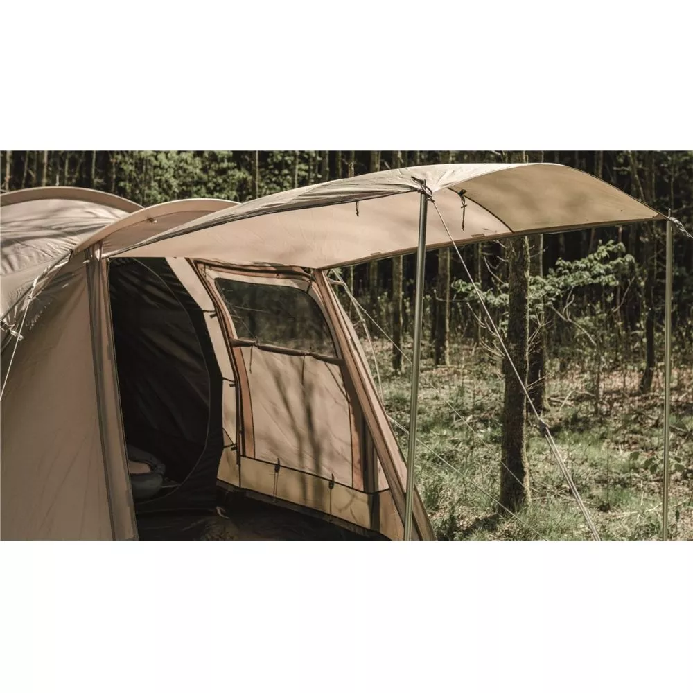 Ein regengeschützter überdachter Seiteneingang ermöglicht stets trockenen Zugang in das Zelt.Â
