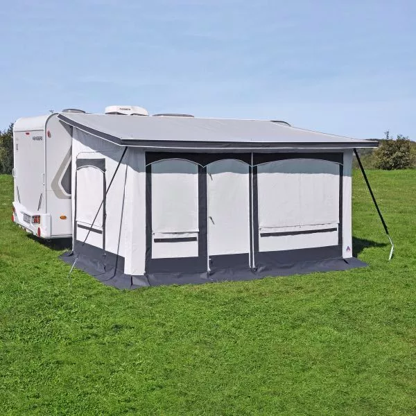 Das Hahn Vorzelt Friesland ist mit seinem robustem PVC-Material ideal als Wintervorzelt bzw. Ganzjahresvorzelt geeignet. Das Vorzelt wird in dieser AusfĂĽhrung links im Keder eingezogen.Â