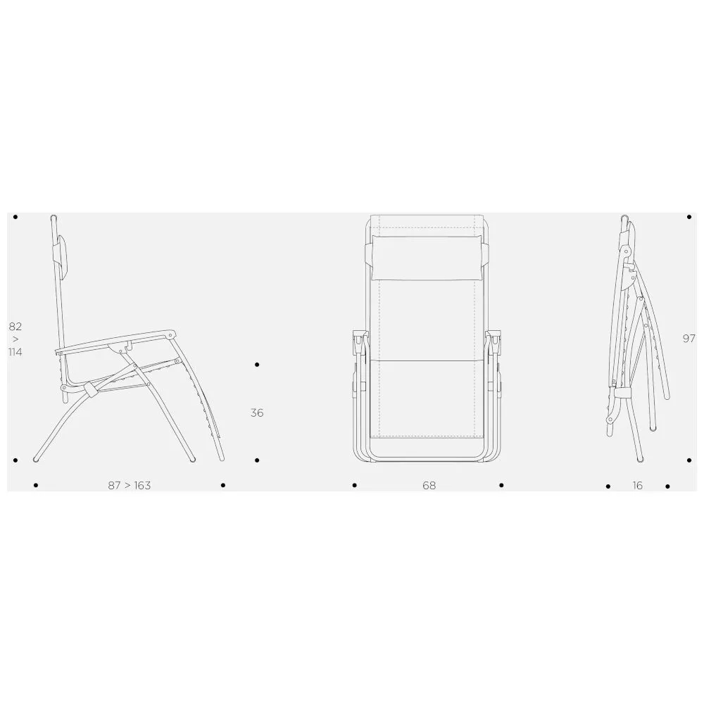 Der Lafuma R Clip ist ein stufenlos verstellbarer Relaxsessel für optimale Erholung. Der R Clip findet leicht seinen Platz im Garten, am Swimmingpool oder auf der Terrasse. Die beste Ruheeinstellung ist die bekannte „Schwerelosigkeit“ (mit den Füssen leicht oberhalb des Herzens). Der hochwertige Bartyline ISO Bezug wird an den Stahlrohren durch Clips aus Elastomer gehalten. Somit hast du einen stabilen und festen Komfort, der deinen Rücken unterstützt.