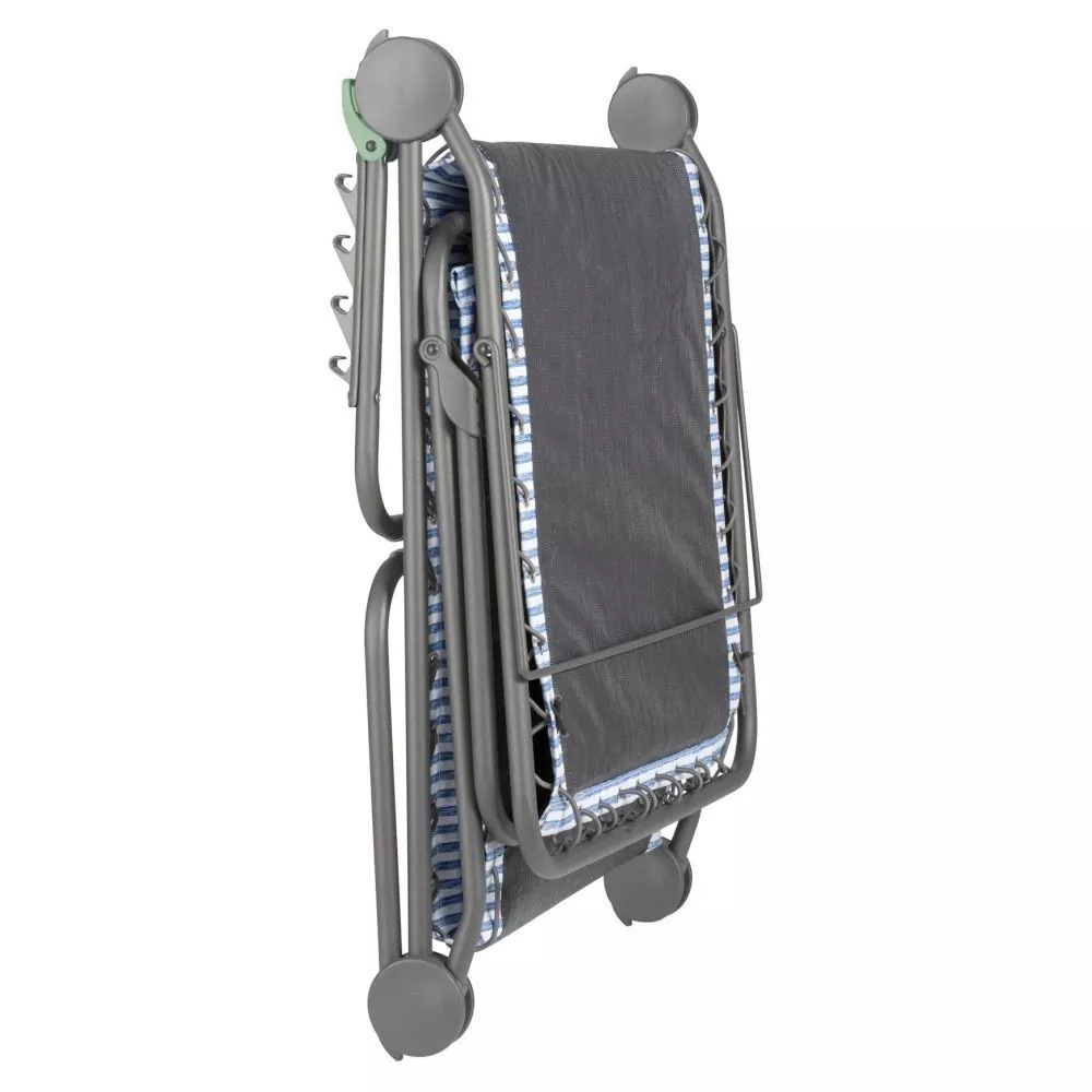 Die Sonnenliege Lafuma Siesta L hat zwei Funktionen. Diese Liege ist perfekt um ein Sonnenbad am Swimmingpool zu nehmen oder sich eine erholsame Pause im Garten zu gönnen. Desweiteren kann sie als Zustellbett zu Hause oder beim Camping genutzt werden. Den weichen und angenehmen Liegekomfort hat sie der GummischnuraufhÀngung zu verdanken. Die Strand-Liege ist widerstandsfÀhig und spart Platz beim verstauen, da man sie zusammenklappen kann.